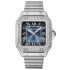 이번에 소개해드릴 시계는 까르띠에 산토스 블루다이얼 다이아몬드 셋팅 입니다. 산토스는 의미가 깊은데요 최초의 손목시계라는 타이틀이 있는만큼 파일럿워치의 원조의 모습을 보여주는데요 산토스는 브라질 출신의 비행사 알베르토 산토스 뒤몽을 위해 최초로 디자인한 손목시계입니다. 산토스 뒤몽은 비행 도중 간편하게 시간확인을 위해 탄생하였는데요. 사각형의 프레임에 모서리를 곡선처리해주면서 일반적인 사각형의 프레임에서 특징을 더욱 살려주었는데요 케이스와 베젤은 유광과 무광처리를 다르게 해주면서 다른 느낌을 준 모델입니다.