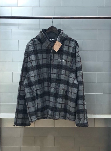 MIUMI* 체크 플리스 집업 자켓