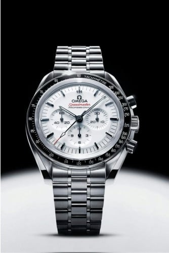 오메가 스피드마스터 문워치를 이번에는 우주 탐험과 컬렉션의 유명한 유산에서 영감을 받은 래커 처리된 화이트 다이얼을 탑재한 새로운 에디션으로 출시한 모델입니다.