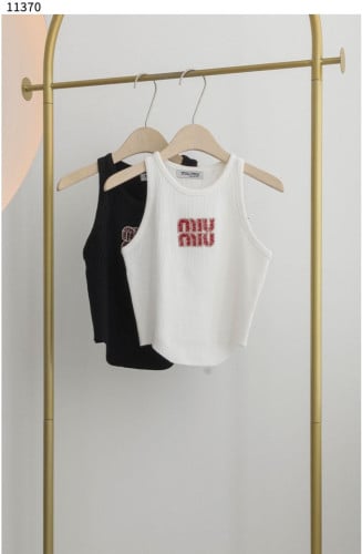 #미우미우 [MIU MIU] 자수 로고 골지 니트 탑 슬리브리스 신상입고💢 #상의 #나시 #11370