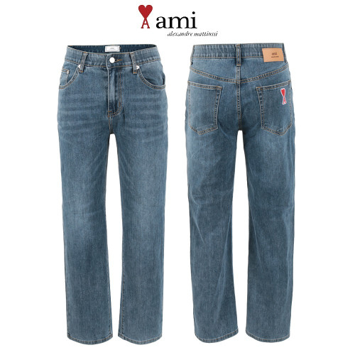 아미 딥블루 쿨터치 데님 세미 와이드 히든밴드 청바지