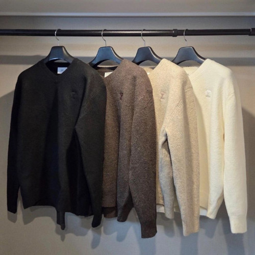 아미 드 꾀흐 까마이외 자수 V넥 울 스웨터 니트