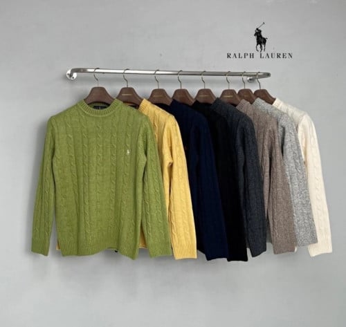폴로 꽈배기 자수 울 니트