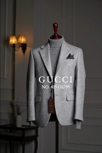 구찌 울 헤링본 블레이저 자켓 그레이