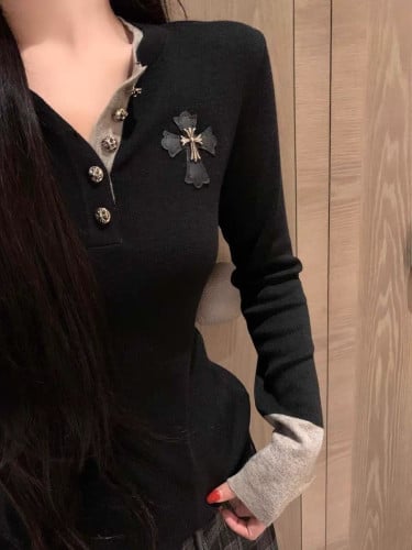 크롬하츠 여성 스틸 패치 배색 니트