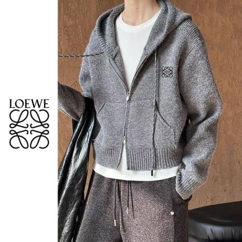 로에베 여성 배색끈 니트 후드집업