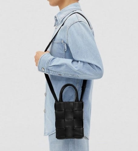 💕 보** 미니 레더 카세트 토트백 블랙