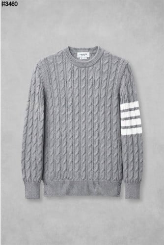 🍀 [THOM BROWNE] 톰브라운 코튼 사선 4-바 케이블 울 라운드 스웨터 🍀