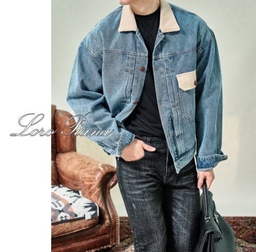 코듀로이 카라가 배색된 캐주얼한 데님점퍼입니다.