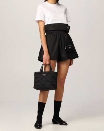 💕 프** 고급 리나일론 나파 트라이앵글 퀼팅 패딩 더블핸들 지퍼 포켓 토트 블랙
