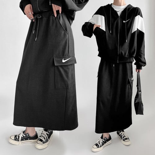 "페미닌한 무드 세미크롭 가오리배색 절개포켓디테일 세미크롭후드아우터+카고스커트 투피스SET:)