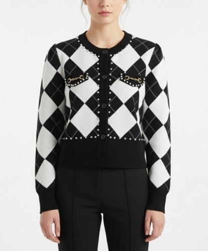 #명품의류 G 장식 아가일 니트 가디건 (7049) (dmd 904541)