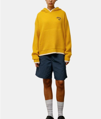 •Stus**(스투*)와 Wales Bonner(웨일즈 보너)의 FW25 컬래버레이션 캐시미어 후디 스타일 로고 니트로, 로고가 포인트인 편안한 후드형 와플 조직 니트입니다. 맞춤 제작한 면 혼방 니트 원단을 사용해 한 벌당 무게가 무려 1,000g에 달하는 중량감 있는 제품이며, 오리지널 편직 방식 그대로 재현해 촉감이 부드럽고 까칠하지 않아 민감한 피부에도 부담이 없습니다. 전체적으로 여유 있는 루즈 실루엣으로 성별에 구애받지 않고 멋스럽게 착용할 수 있게 정교하게 패턴이 재단되어 있습니다. 공식 홈페이지와 동일한 맞춤 부자재(세탁 라벨·넥라벨·행택 등)까지 모두 재현해 1:1 제품 입니다.