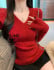 셀자수 브이넥 소매 트임 골지 니트 1016
