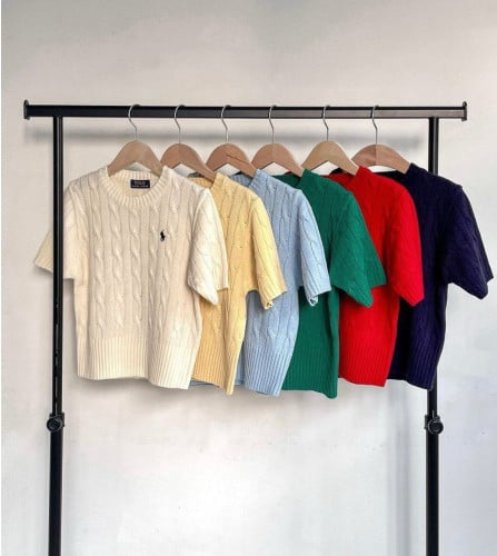 폴로 시그니처 모델인 꽈배기 반팔 니트 입니다.