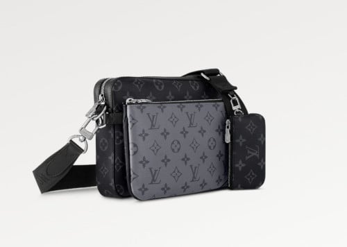 모노그램 이클립스 캔버스와 모노그램 이클립스 리버스 캔버스가 조화를 이루는 트리오 메신저 남성 백. 그레이 색조의 아이코닉한 톤온톤 모티프가 돋보이는 기능적인 하이브리드 실루엣. 전통적인 크로스 바디 디자인에 탈착형 지퍼 포켓과 스트랩에 달린 동전 지갑으로 색다른 매력을 더한 아이템.
