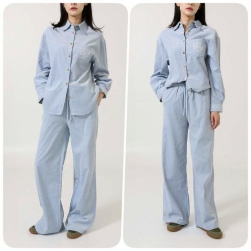 여성 아나그램 자수 로고 코듀로이 셔츠 & 팬츠 SET LOE-566