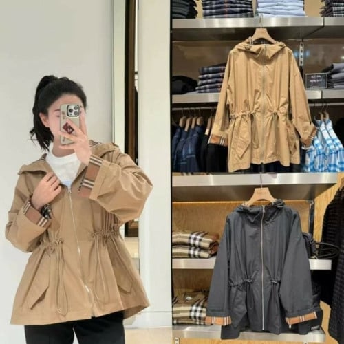 여성 이너체크 드로스트링 코튼 후드 자켓 BB-3645