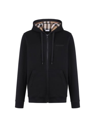 면 저지 소재의 지퍼 후디.체크가 연출된 면 플란넬 소재의 후드가 대비를 이루는 디자인 입니다.