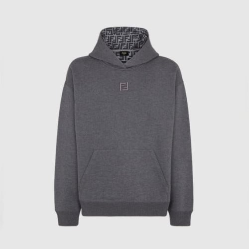 후드에 조절끈이 달린 긴팔 스웨트셔츠입니다. 앞면에 캥거루 포켓이 있습니다. 그레이 멜란지 코튼 소재로 제작되었으며, 부드러운 그레이 안감에 그레이 FF 로고가 있습니다. 가슴 중앙에는 안감 색상과 조화를 이루는 FF 로고 자수가 있습니다.