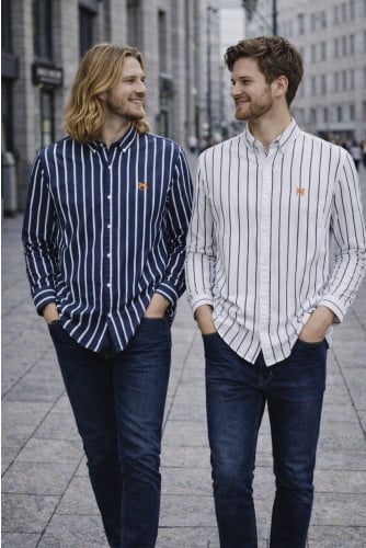 💕 메* 키츠네 브라운 폭스헤드 워싱 스트라이프 셔츠