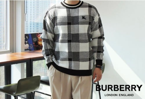 💕 버** 믹스 체커보드 자수로고 라운드 니트