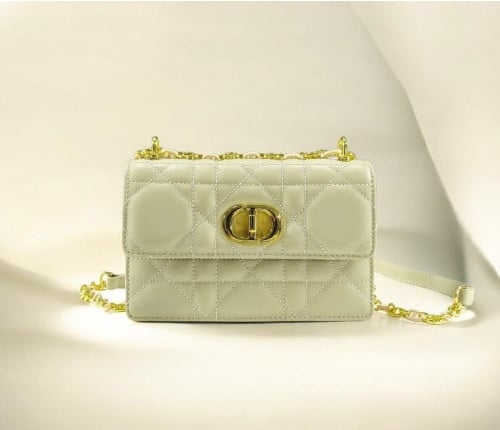 Di0r Caro 라인에서 선보이는 아이템으로, 모던하면서도 타임리스한 우아함을 간직한 Miss Caro 미니 백입니다. 매크로까나쥬 스티칭의 유니크한 퀼트-이펙트가 돋보이는 파우더 베이지 컬러 양가죽 소재로 제작되었으며, Christ*an Di0r 향수 보틀의 씰에서 영감을 받은 골드 피니시 메탈 CD 트위스트 잠금장치 디테일의 플랩이 특징입니다. 골드 피니시 메탈 링크와 톤온톤 에나멜 링크가 번갈아 나타나는 길이 조절 가능한 체인 스트랩은 가죽 인서트로 완성되어 핸드백, 숄더백, 크로스백으로 편안하게 활용하기 좋습니다.