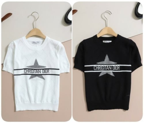 여성 별 자수 로고 반팔 니트 DI-1873
