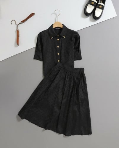 모노그램 자카드 셔츠 & 미디 스커트 set LOU-2676