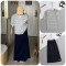 #미우미우 [ miu ] 수입 스트라이프 브이넥 반팔 티셔츠 & 핀턱 밴딩 롱 스커트 SET -그레이- 입고💢 #여성세트 #트레이닝셋