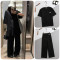 #미우미우 [ miu ] 수입 스팽글 오버 반팔 티셔츠 & 립 밴딩 팬츠 SET -블랙- 입고💢 #여성세트 #트레이닝셋
