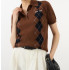 세련된 인타르시아 모티프와 아가일 패턴이 만난 캐시미어 니트 폴로 셔츠입니다. 미*미* 로고가 아이코닉한 시그니처 디자인을 완성합니다.