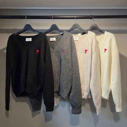 아미 여성 드 꾀흐 엠브로이더리 V넥 울 스웨터 니트