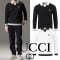 GC 스틸로고 배색 카라 롱슬리브 니트